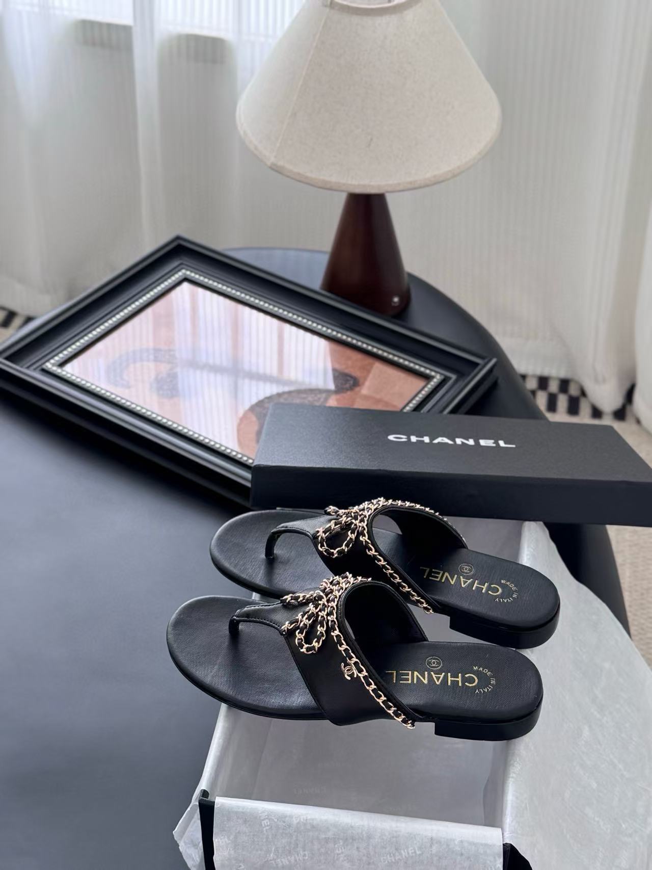 CHANE1 高品質ボウチェーンスリッパ【50%割引+送料無料】