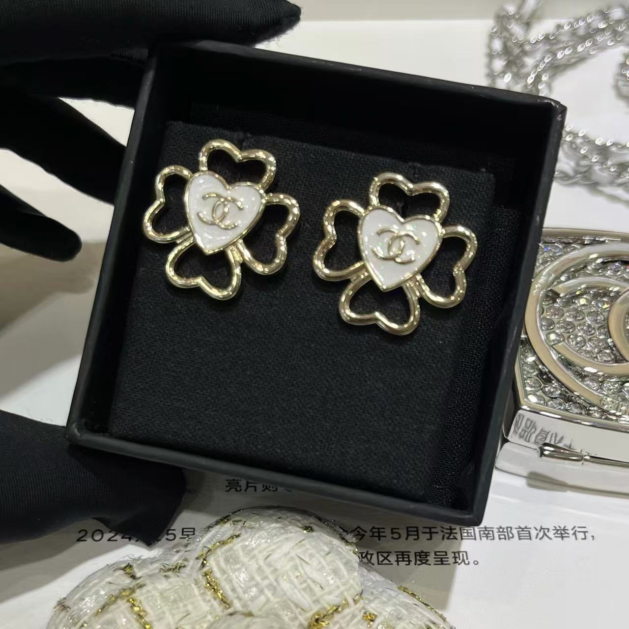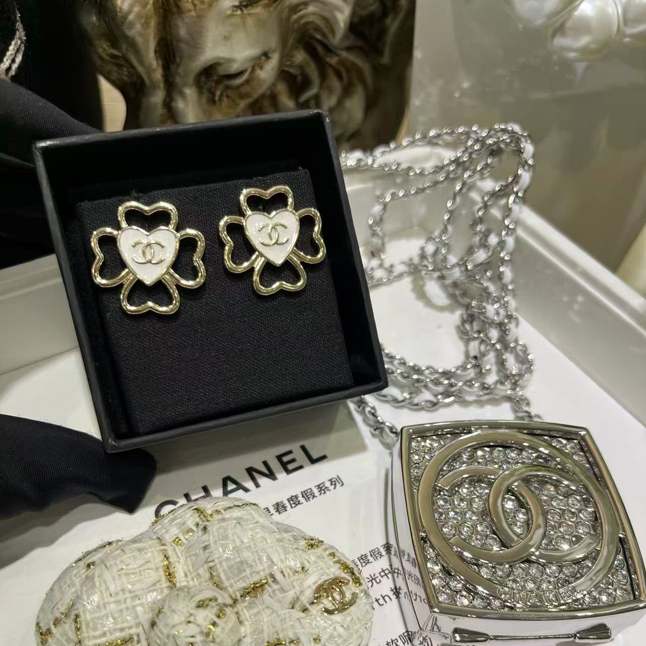 CHANE1 四つ葉のクローバー ハート イヤリング【 50%割引+送料無料】